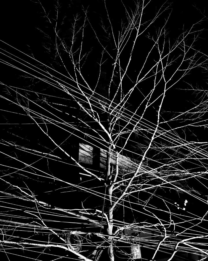 Sounak_Wire Formation_09- The branches of trees hold the wires as a graphical representation of space.