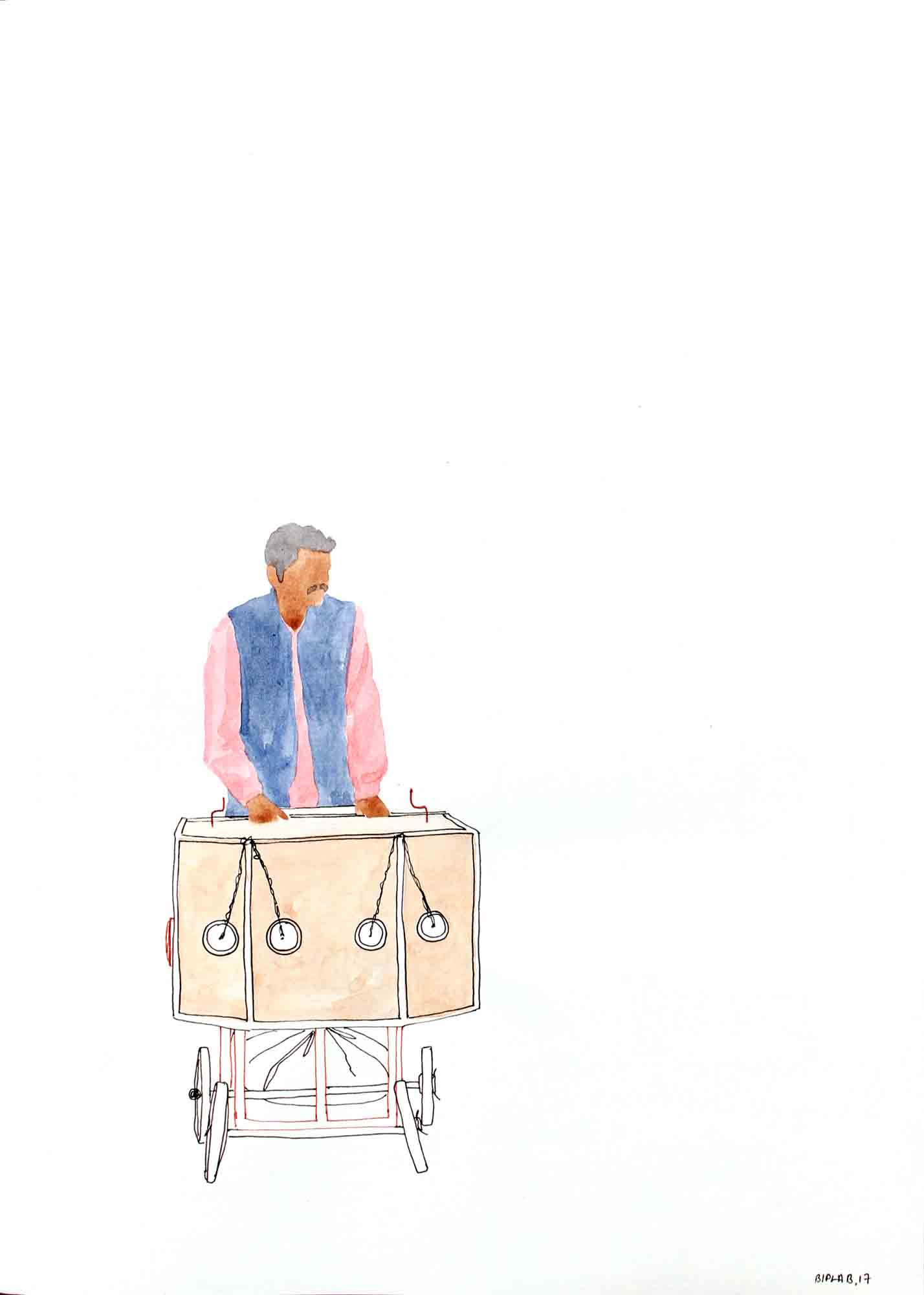 Water colour and pen on paper, 22 x 30 in