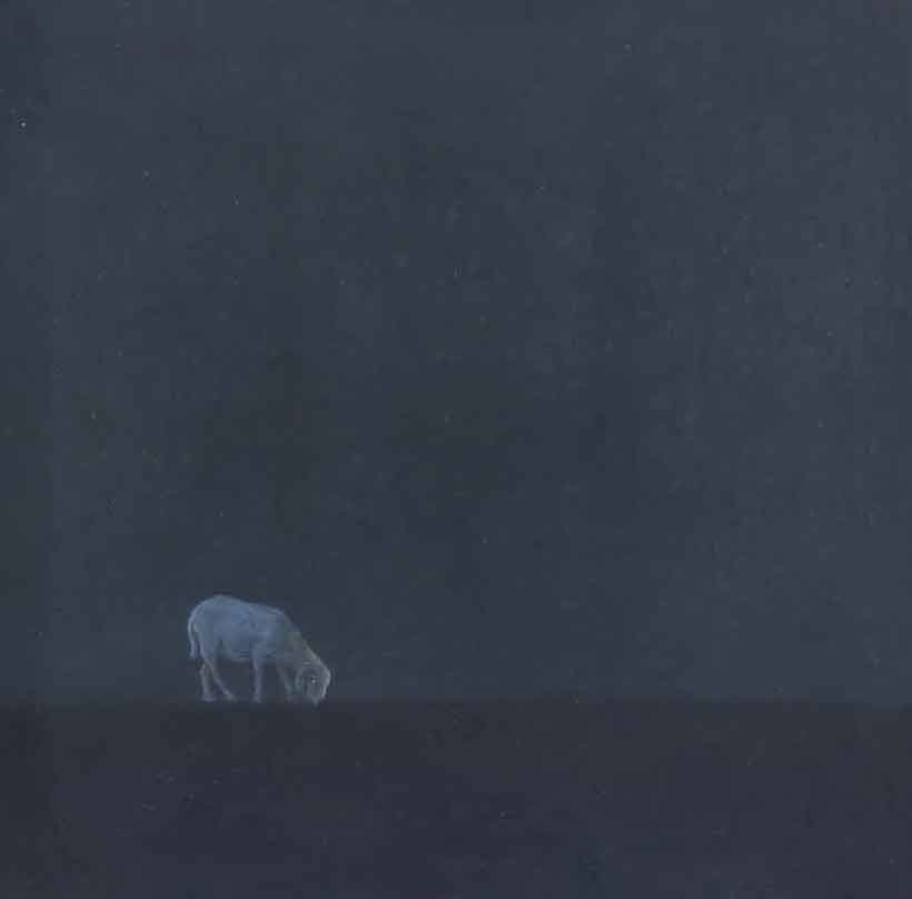 Currently working out of Baroda, Dholakiya uses domestic animals as metaphors in her artworks, portraying isolation and detachment. The artist gets inspired by rural areas of the country and creates a dialogue between nature and mankind.