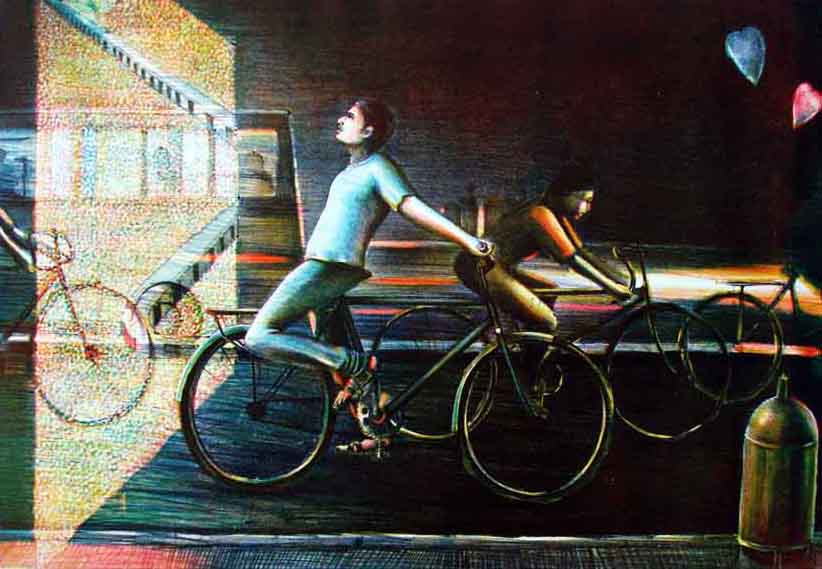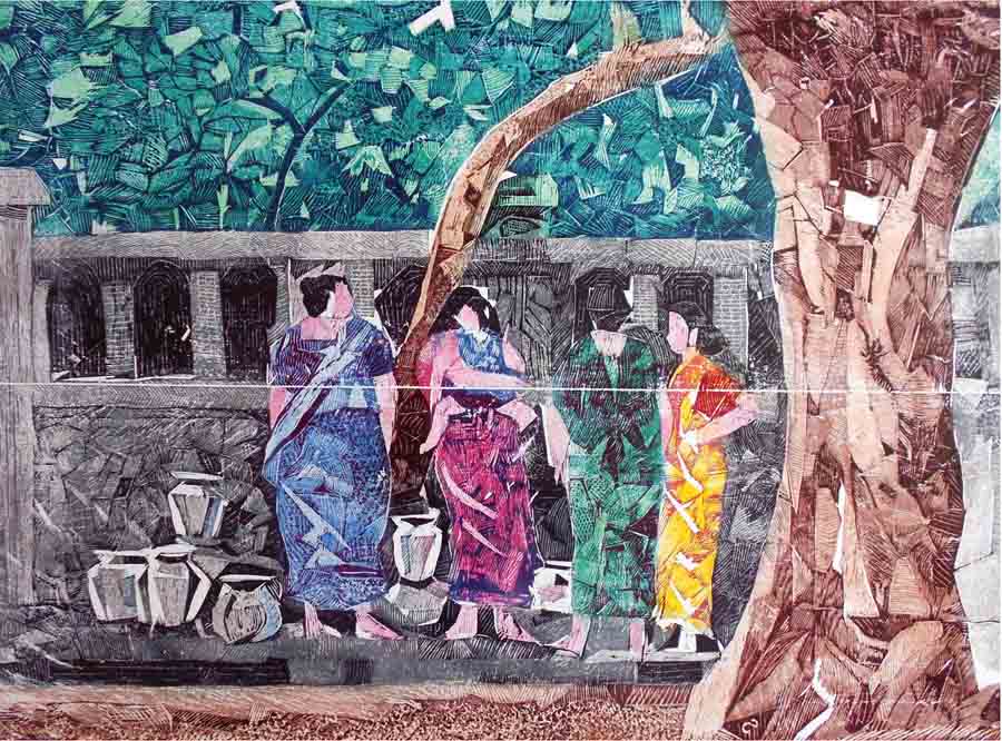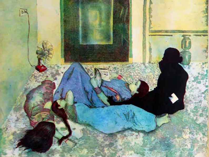 In his artworks, L. Raja gets inspired by things he sees or experiences in his everyday life and turns them into a subject for his canvas.