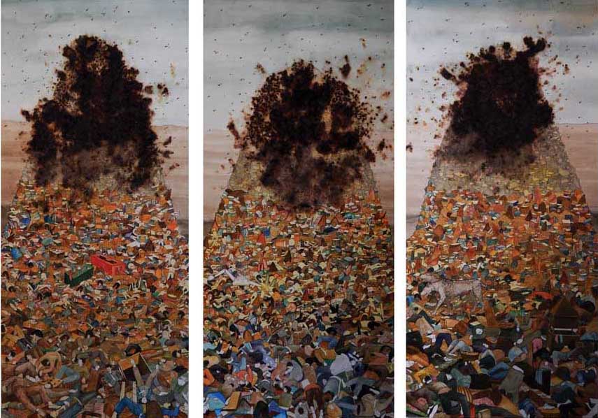 Rice Paper, Charcoal, Canvas, Acrylic, Water Color, Matchstick head, Mix media