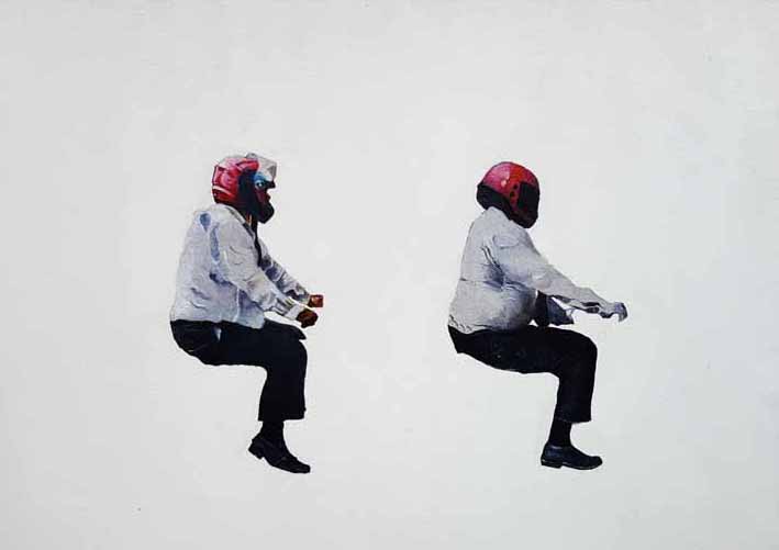 Zafar's work is a marriage between structures and patterns that exist within his surroundings. From interacting with people to observing their behaviour, Waleed Zafar constructs his artworks that not only bring out the basic human condition but also the pragmatic side of the society.